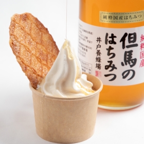 はちみつとミルクのコラボレーションで絶妙な甘みを体験できます。使用される「但馬のはちみつ」は当駅オンラインショップの人気No.1商品です。