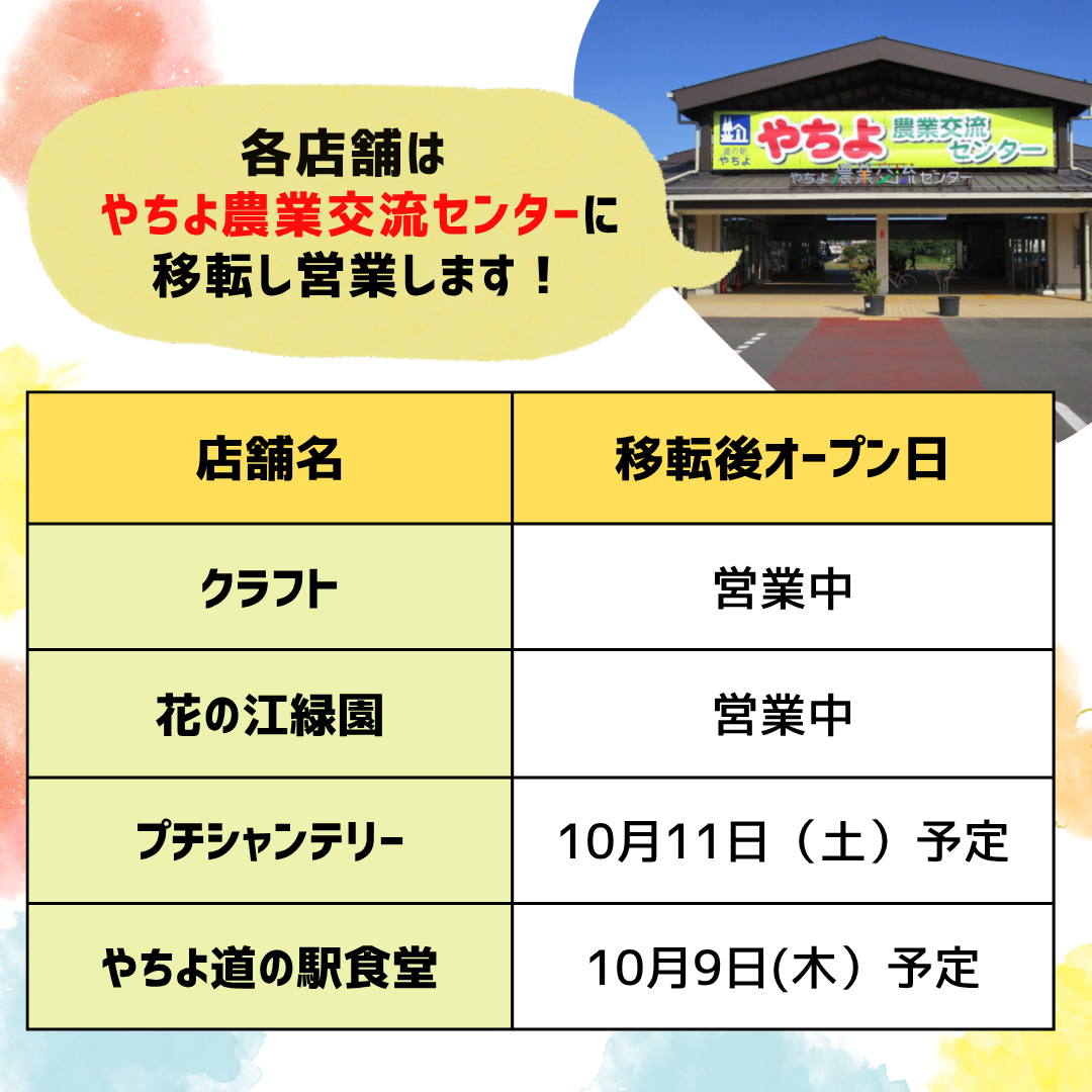 【道の駅やちよ】「ふるさとステーション」リニューアル工事に伴う閉鎖と店舗移転のお知らせ