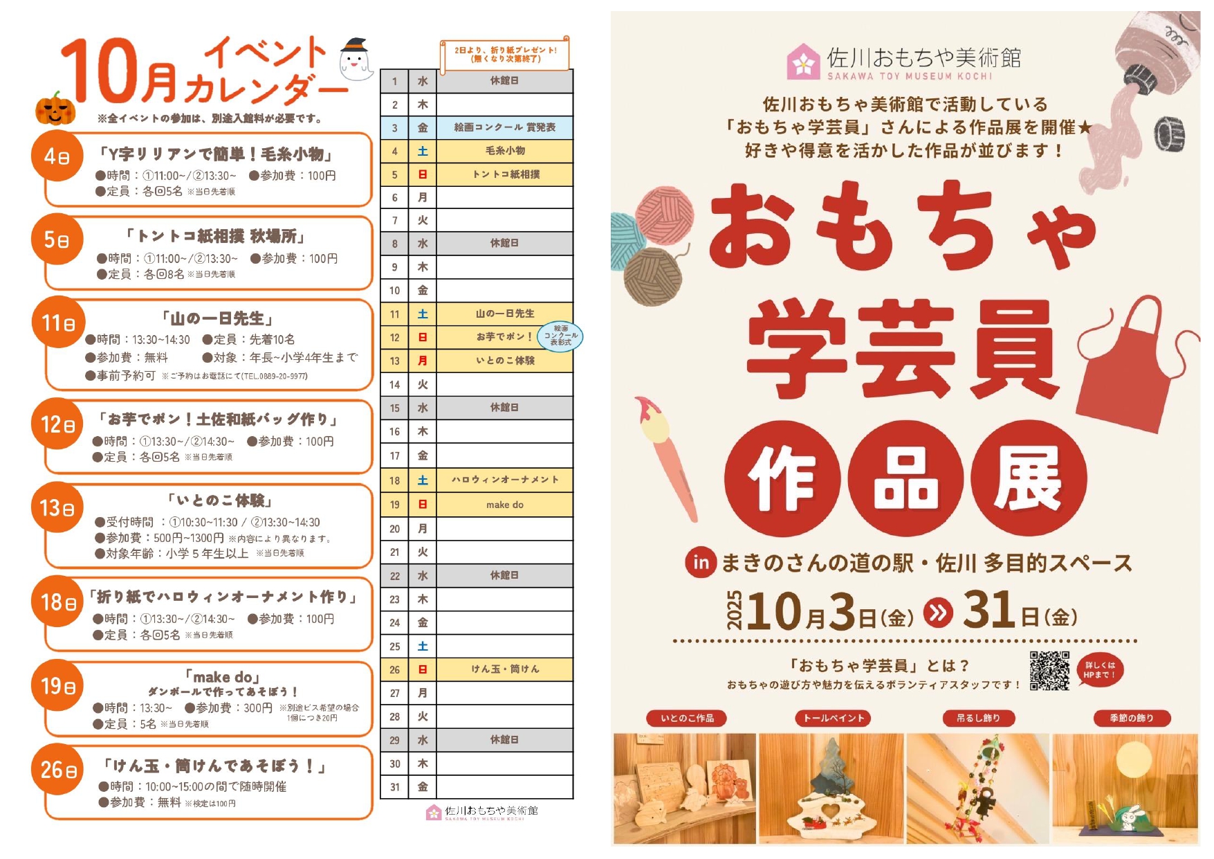 【道の駅 まきのさんの道の駅・佐川】佐川おもちゃ美術館 2025年10月イベントカレンダー♪ & 『おもちゃ学芸員作品展』