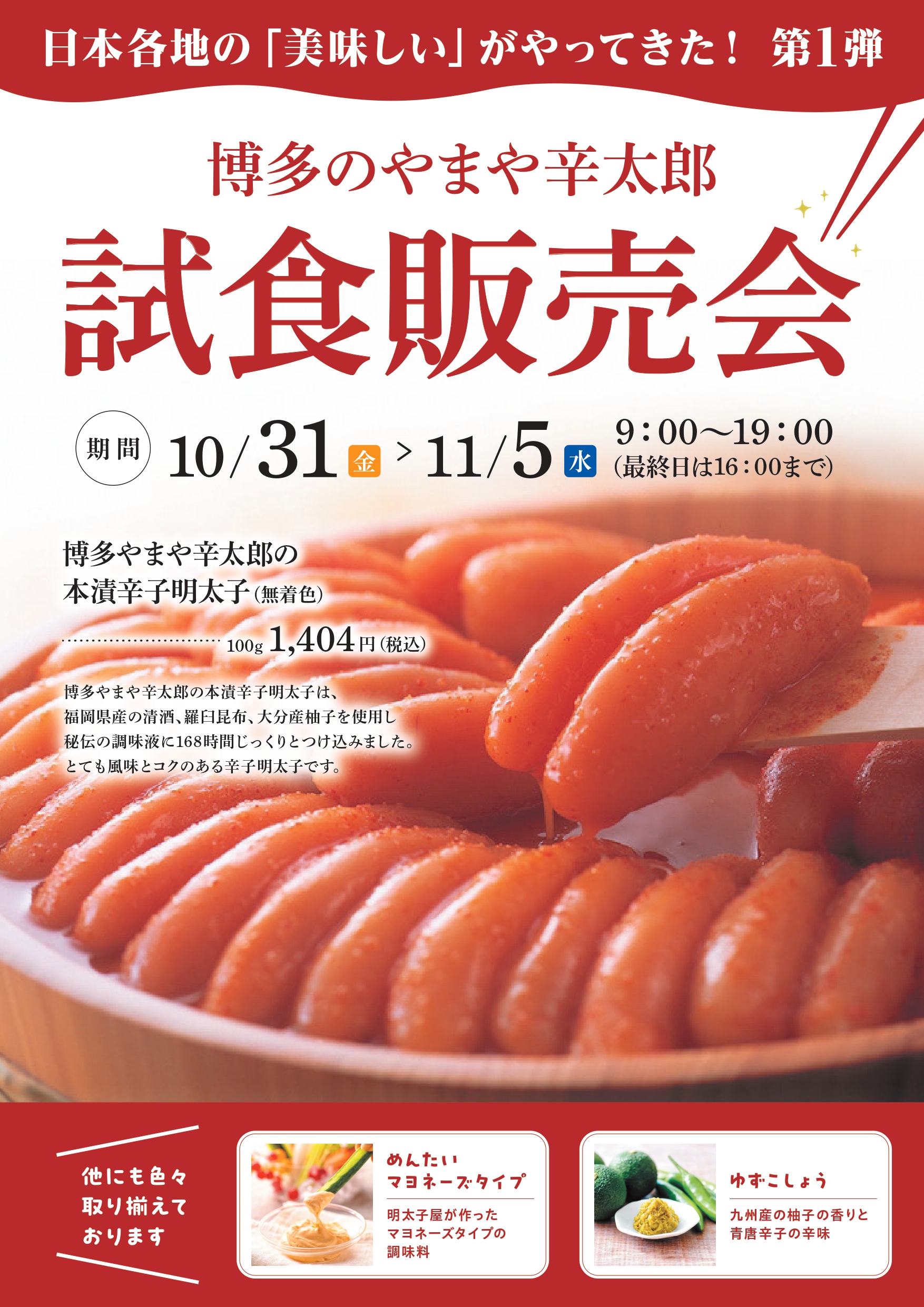 営業時間: 9:00~19:00 (最終日11月5日(火)は16:00まで)