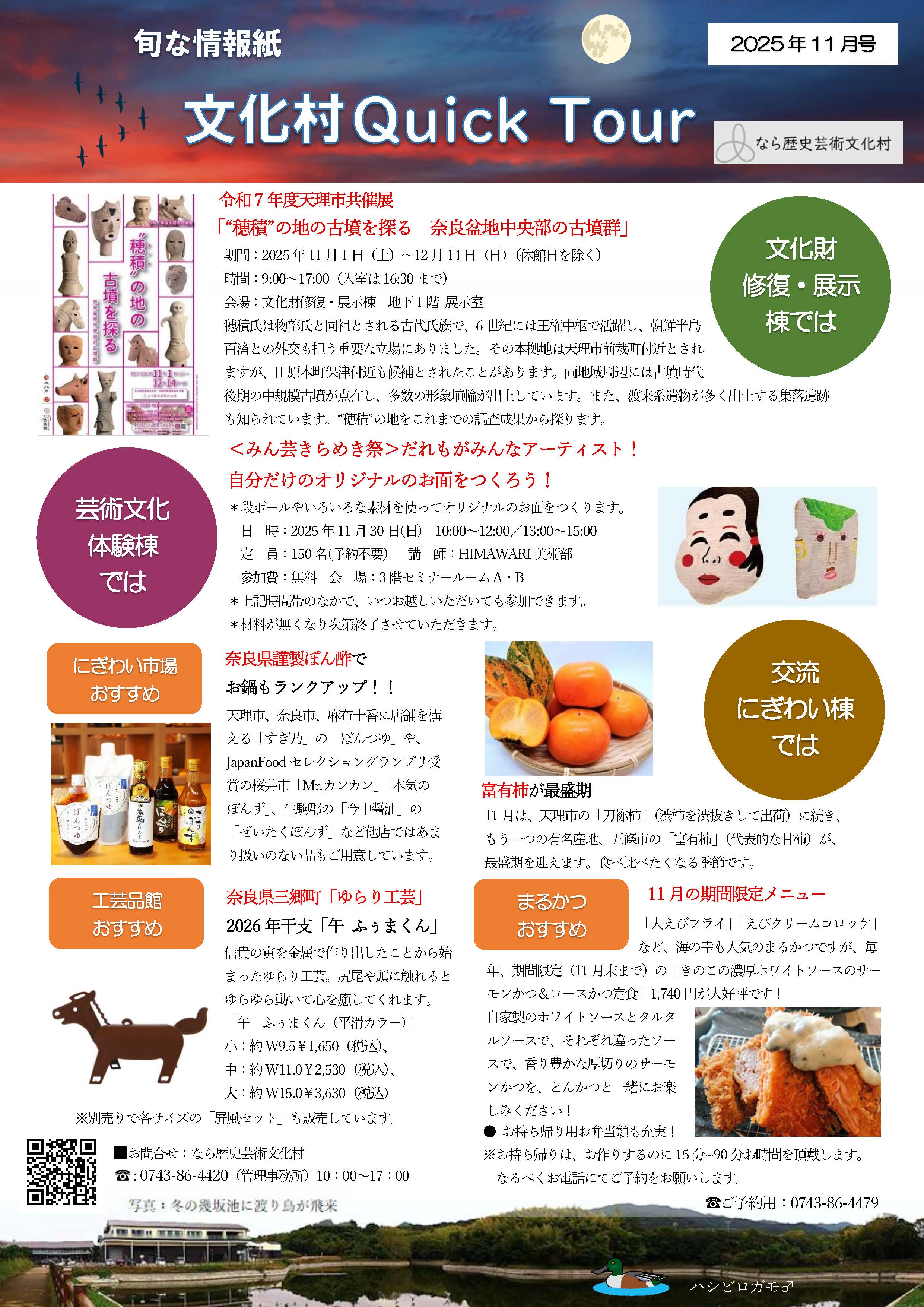 【道の駅なら歴史芸術文化村】旬な情報紙「文化村 Quick Tour」2025年11月号を発行!