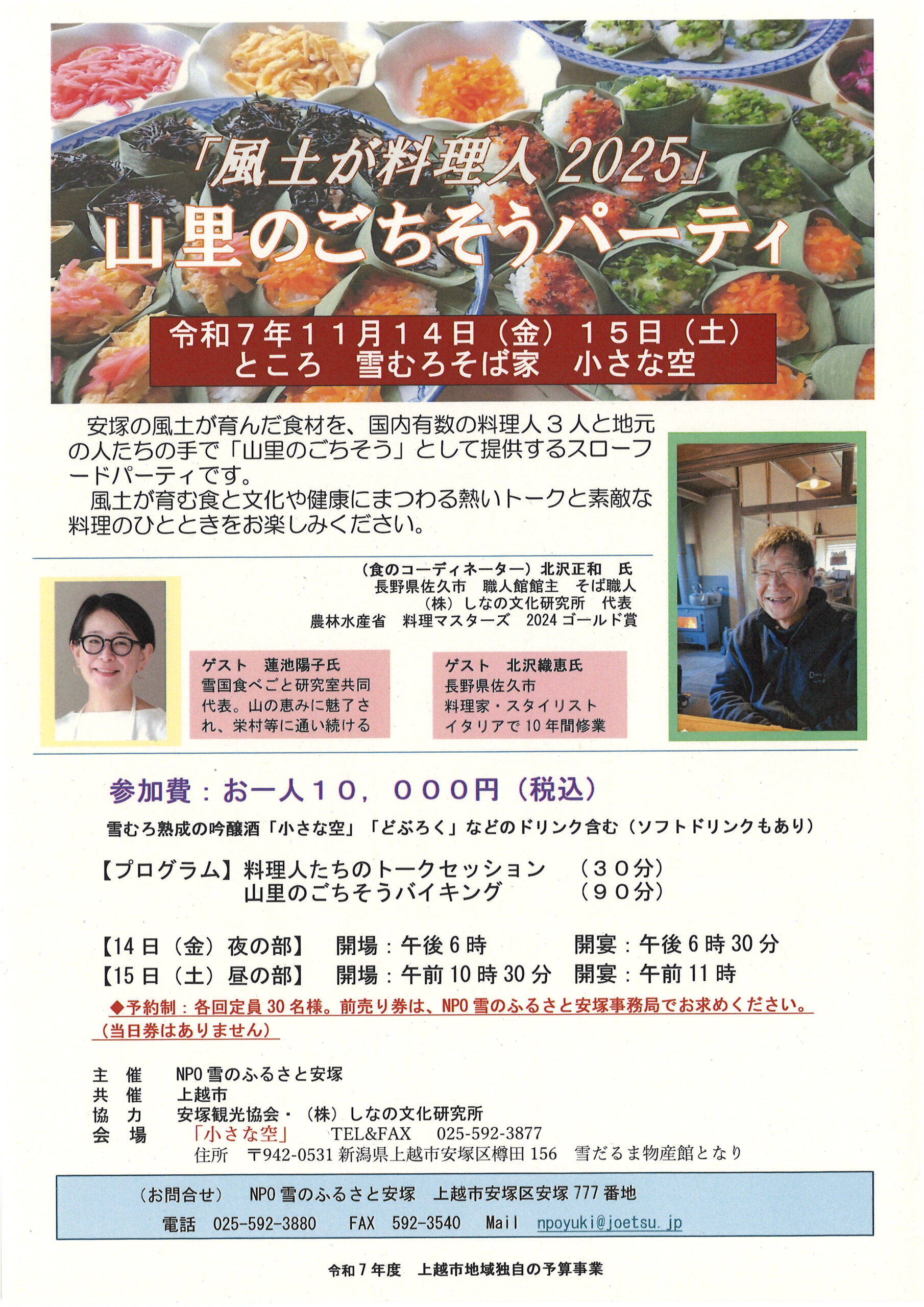 【道の駅雪のふるさと やすづか】山里のごちそうパーティin雪むろそば家小さな空 開催