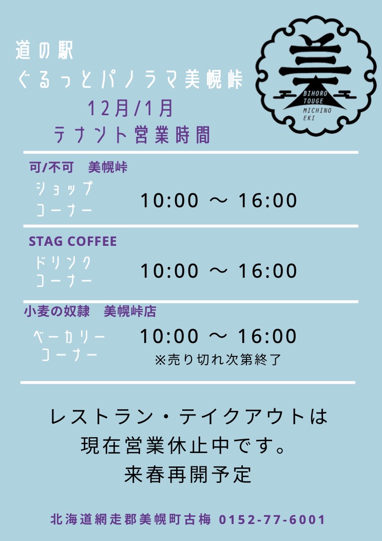 【道の駅ぐるっとパノラマ美幌峠】12月からの営業時間について