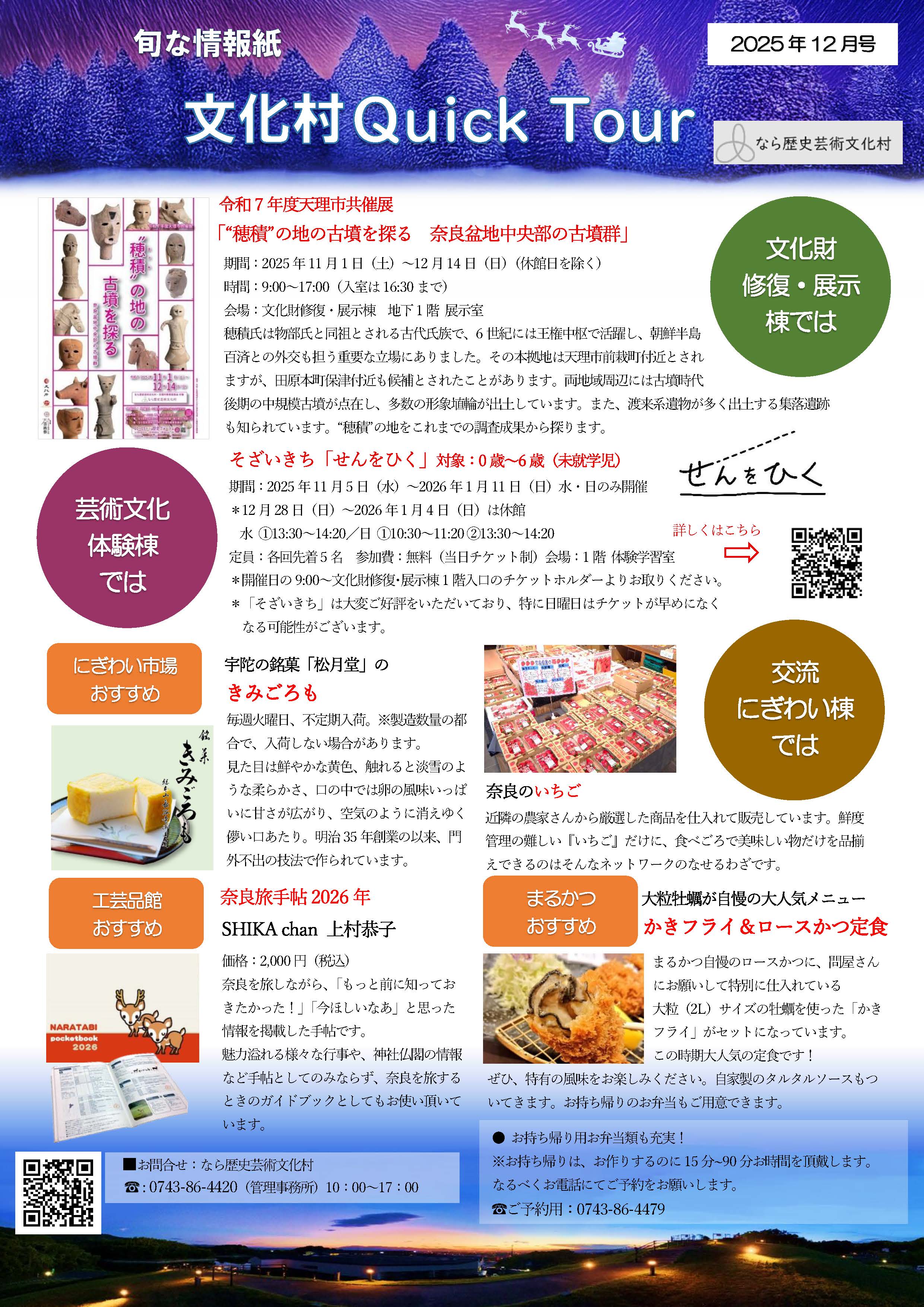 【道の駅なら歴史芸術文化村】旬な情報紙「文化村 Quick Tour」2025年12月号を発行!