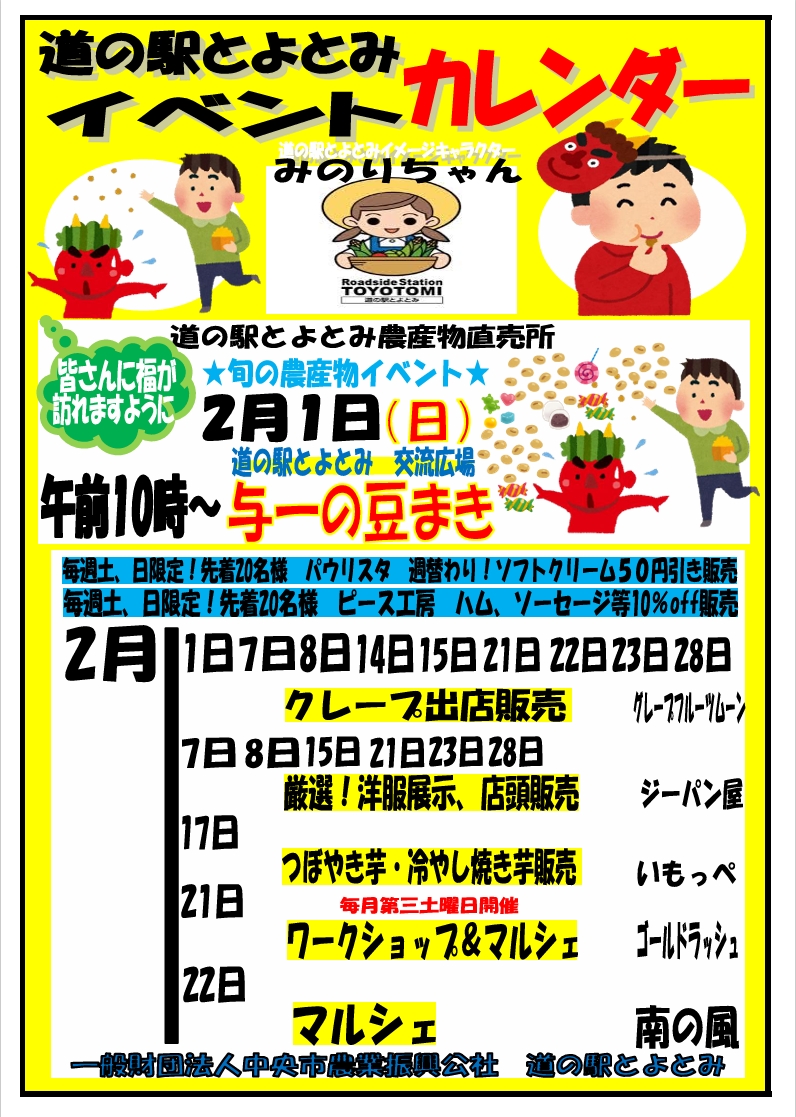 【道の駅とよとみ】2月イベントカレンダー