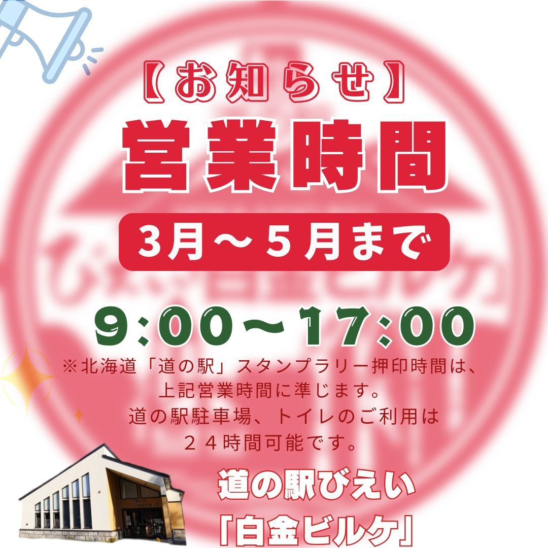 【道の駅びえい 白金ビルケ】[3月~5月]営業時間について