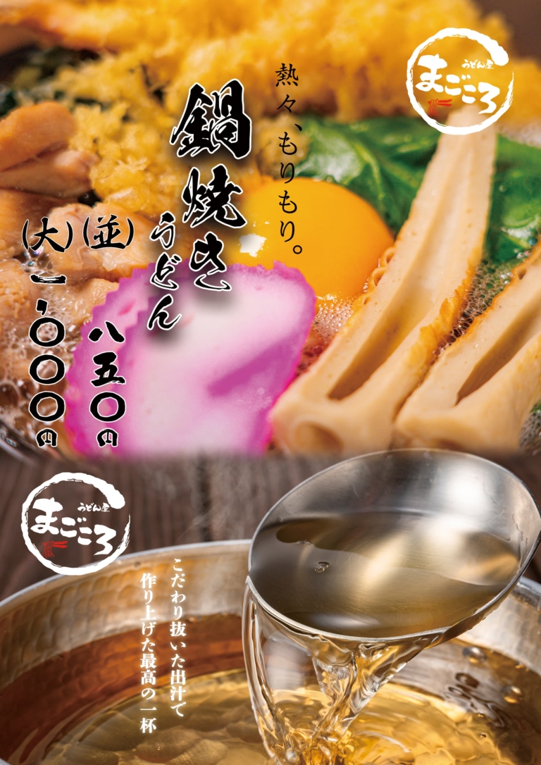宮崎県ならではのコシの少ない柔らか麺を使用し、甘めの出汁が人気のうどん屋まごころ道の駅きたごう店です。鍋焼きうどんをメインに種類豊富なうどんを楽しめます。是非ご賞味下さい。